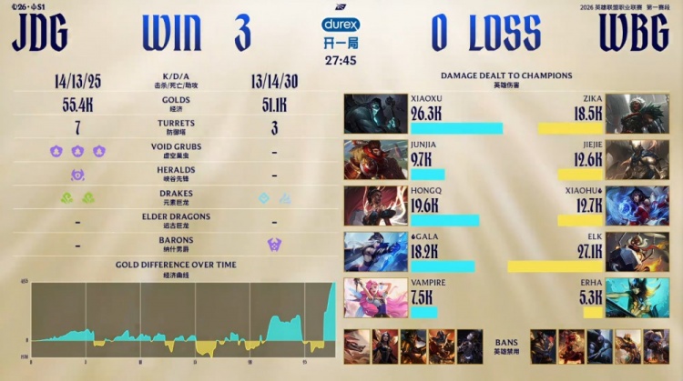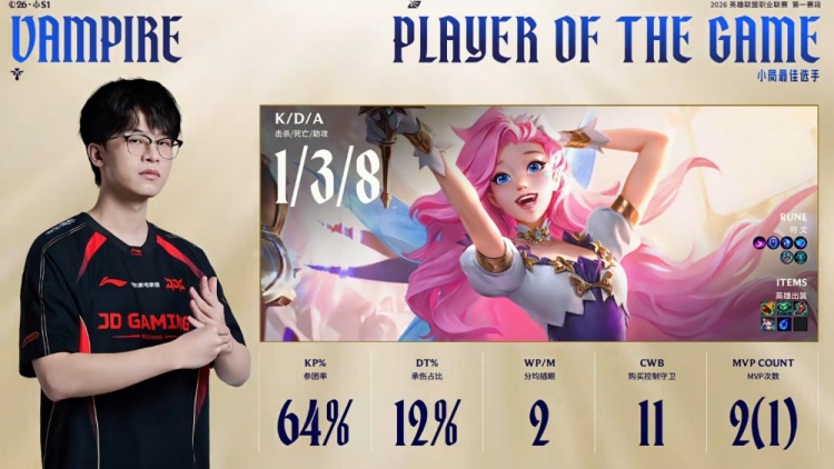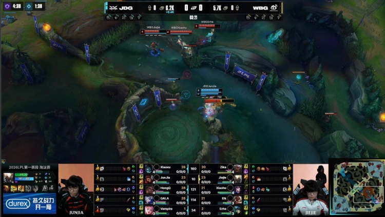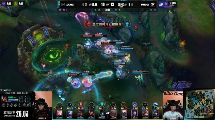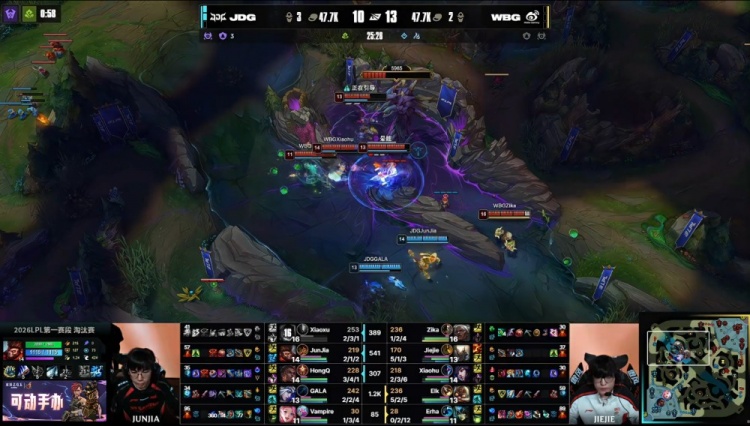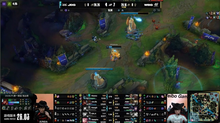 直播吧3月7日讯 2026LPL第一赛段淘汰赛败者组决赛,JDG三局横扫WBG,晋级第一赛段决赛,同时晋级全球先锋赛!