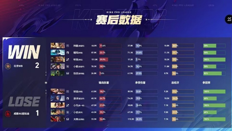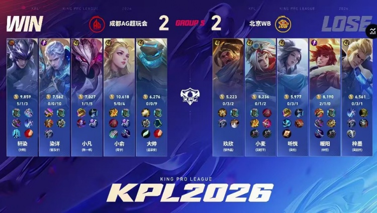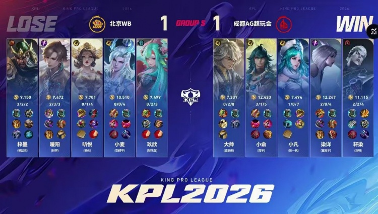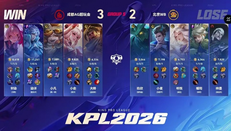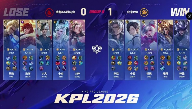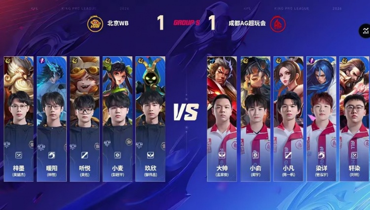 直播吧3月7日讯 2026KPL春季赛本场比赛是由成都AG超玩会对阵到北京WB!