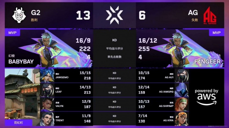 第三局:jawgemo霓虹直接冲A二楼,babay三杀收尾帮助G2拿下AG奖励分!