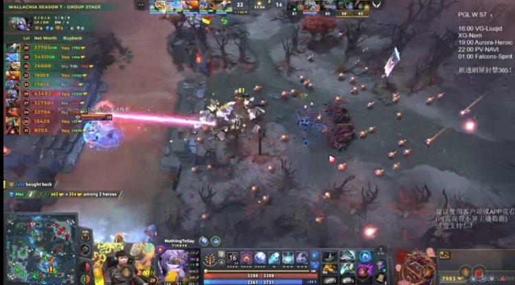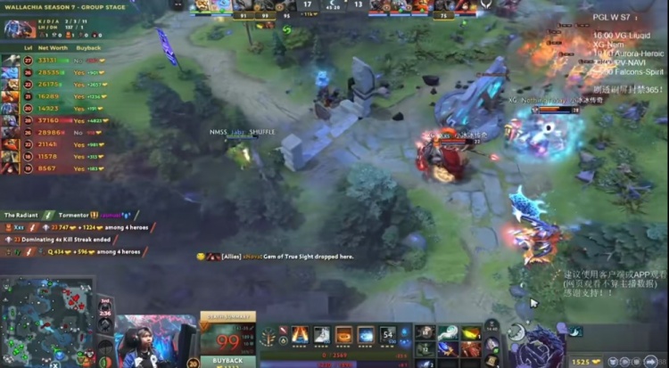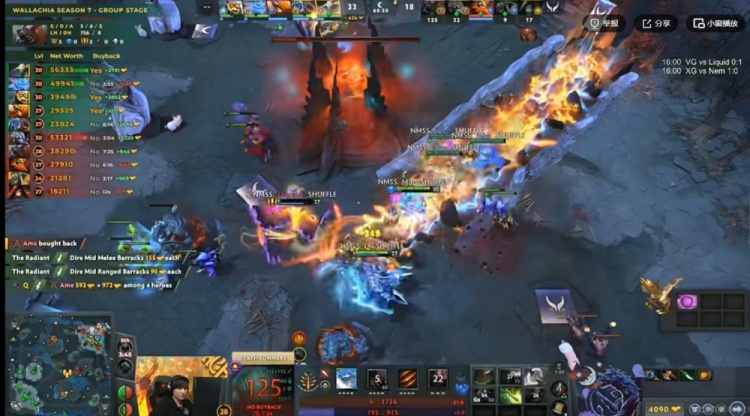 45分钟Nemesis打掉魔晶,但是XG在传送门另一侧等着直接秒掉了凤凰蛋,残局Xxs马尔斯框大+矛留住了23斯温,XG完成强杀打出1换3!破掉Nemesis中路高地!