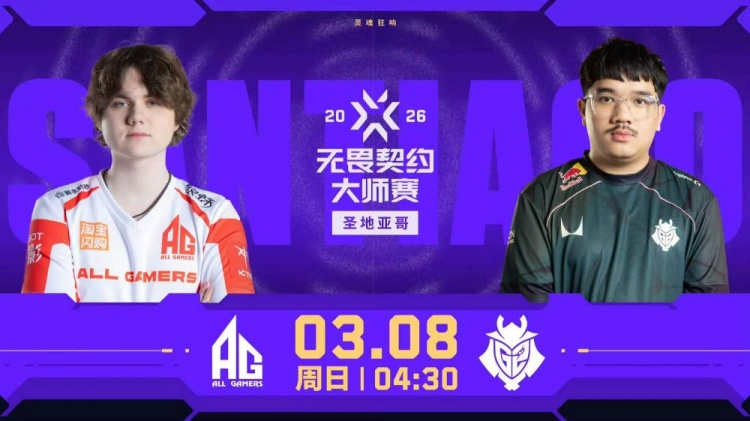 直播吧3月8日讯 2026无畏契约圣地亚哥大师赛本场比赛是由AG对阵到G2,AG能否拿下CN首胜!