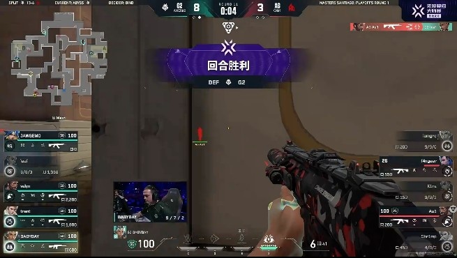 第三局:AG开局直接rush进A点,G2放点打回防直接利用隔断烟完成强拆,G2拿下AG奖励分!