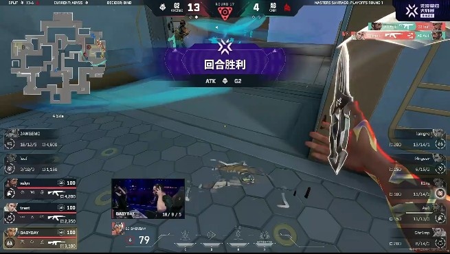 第十三局:G2开局直接进到A点完成进点下包,AG五人回防被G2在点内收下,G2拿下下半场手枪局!