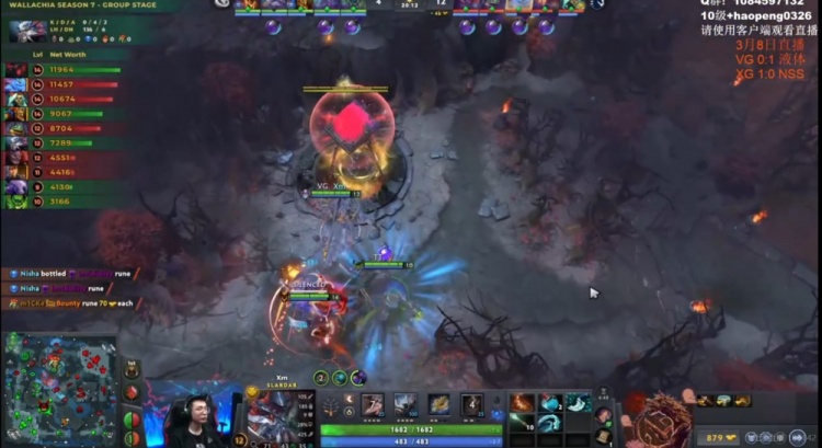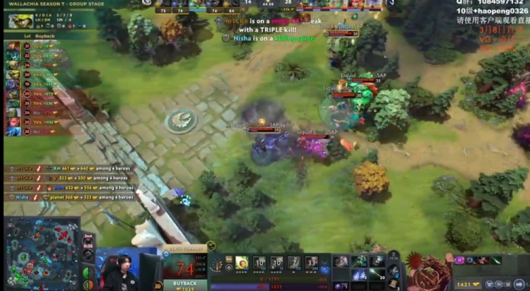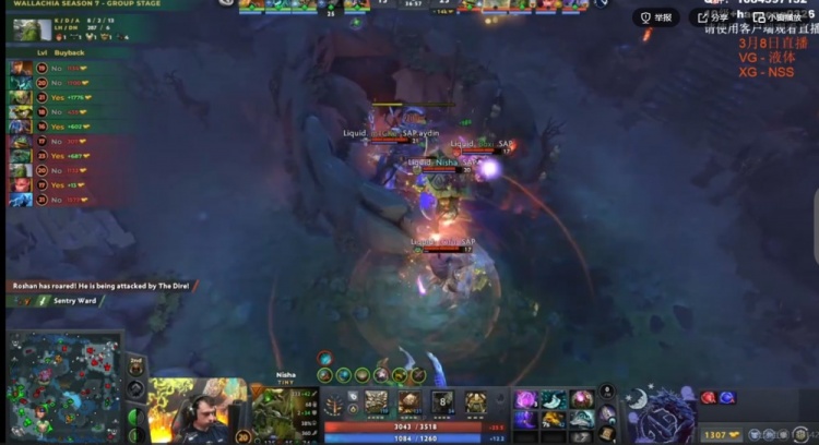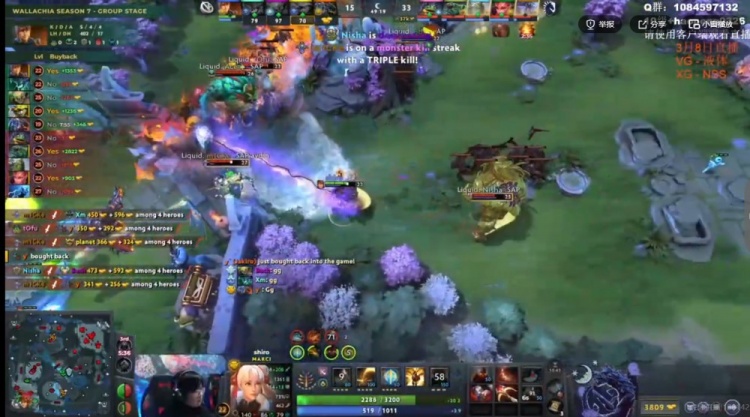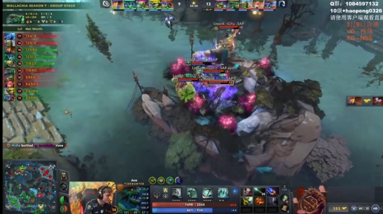 中期VG想抓人但是缺控留不住人,反而是Liquid借助Nisha帕克连续gank打出击杀!Liquid先将经济差拉开到4K!VG则是抱团开雾拿下了魔晶!随后下路团t0fu莱恩跳刀配合队友瞬秒shiro影魔,Xm大鱼人也被留住!Liquid再打一波0换2!回头拿下一代肉山!Nisha帕克带盾!