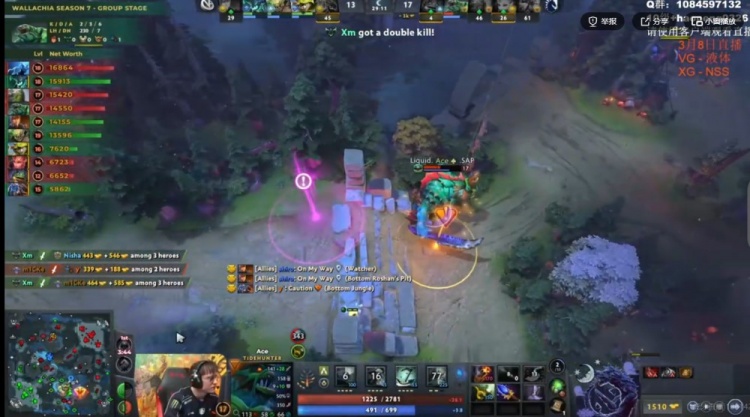49分钟高地团Ace潮汐+m1CKe剃刀双刷新连续放出四个大招,配合队友冲泉瞬间团灭VG!VG也敲出了GG!