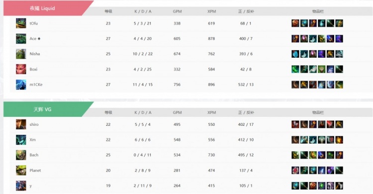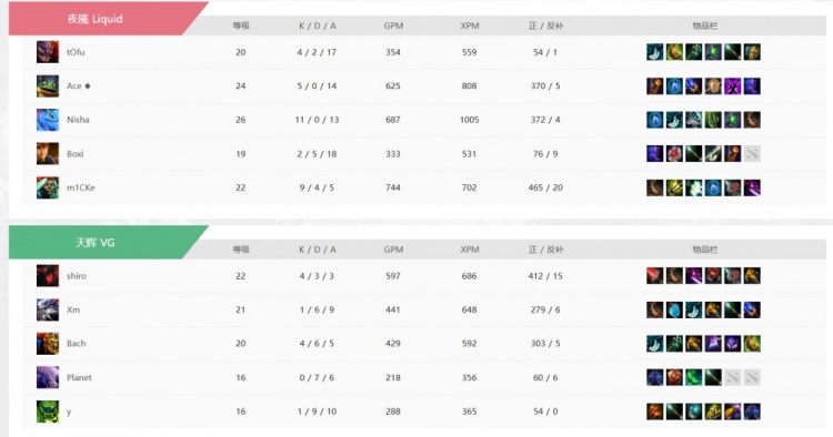 31分钟Liquid开雾逮捕了y队的帕格纳,回头继续收下肉山!这次盾给到了m1CKe奶绿!35分钟Liquid下路逮捕y队帕格纳,站上下路高地先破一路!37分钟高地团,planet虚空被秒!Liquid拆掉中路高地转上最后一路!y队骨法被秒交买活,VG借助蝙蝠拉+影魔摇大强杀m1CKe奶绿想追,结果shiro影魔没有骨法输血,被Nisha帕克圣斧直接带走啊!最终Xm大鱼人也被留住,双大哥倒下之后VG敲出GG!掉入1-1组!