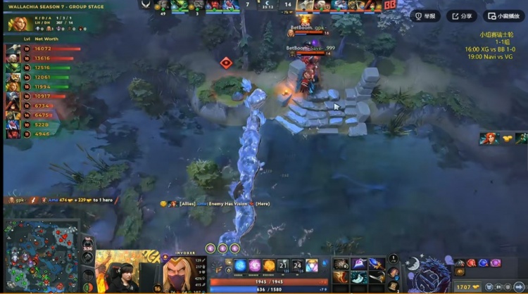 37分钟BB借助小Y插蛇棒拆掉了XG下路高地塔,41分钟肉山团,kiritych斯温等到了Ame风行者风瀑结束两刀带肉山一拍直接秒了啊!XG这波团战直接溃败!BB打出0换3,拆掉两路高地还逼了个xNova萨尔买活!但是回头XG偷掉肉山,结果没技能想撤被kiritych斯温两刀一个!XG被团灭之后敲出GG!