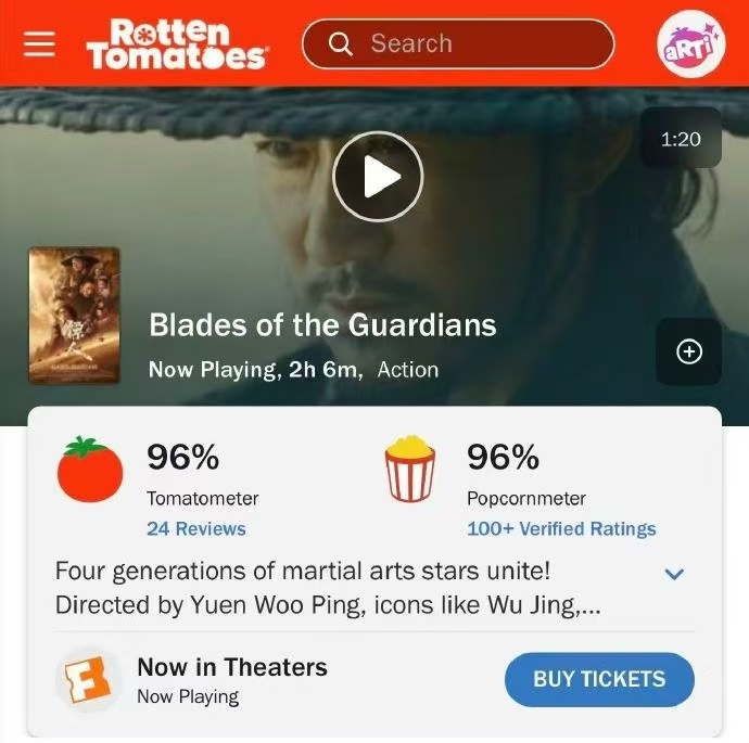 直播吧3月9日讯 今日国产武侠《镖人》票房已经达到1.91亿美元(约13.6亿人民币)的全球票房成绩跃居全球武侠片票房亚军,同时以96%的烂番茄新鲜度席卷海外市场,成为近十年华语武侠出海标杆。
