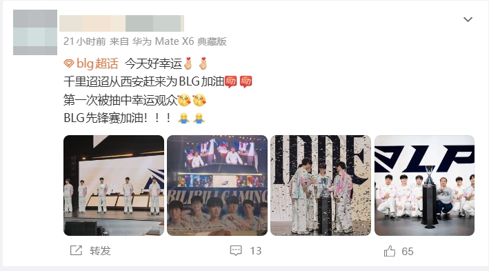这位观众在社媒分享了这张照片👇他是BLG忠实粉丝,这次从西安赶来看BLG的比赛,也是他第一次被抽中幸运观众。