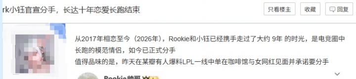 相关:Rookie官宣与小钰分手:已经分开一段时间了,分手是我提出来的