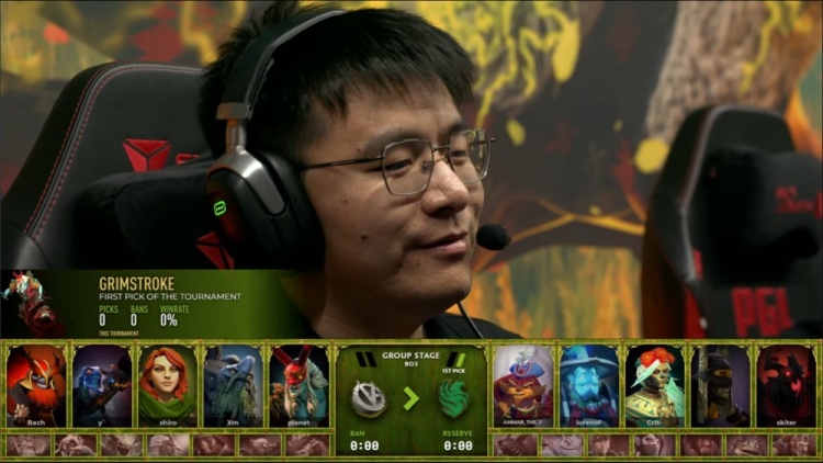 【36:08】VG上路推进,毛哥扔回Cr1t奶绿送planet人头,shiro带盾上高,lorenof蓝猫打出shiro盾,毛哥小小再逮捕skiter影魔,法老正面不堪一击,VG打出0换4,毛哥拿到双杀,VG经济领先1w5k。