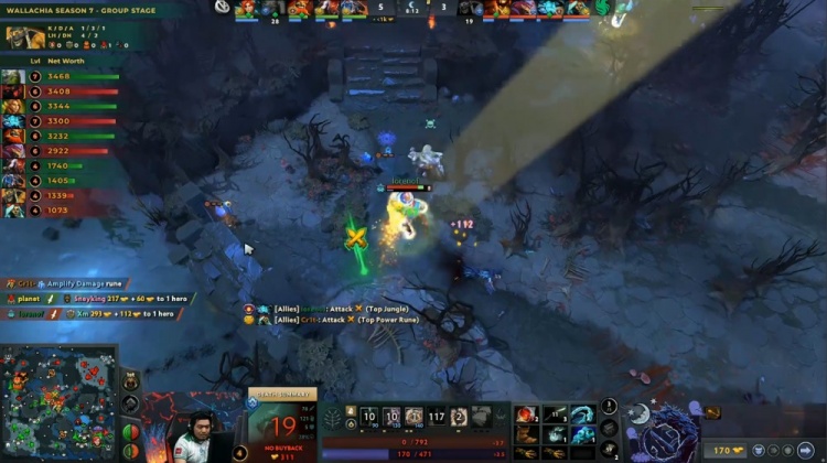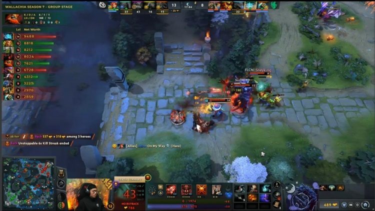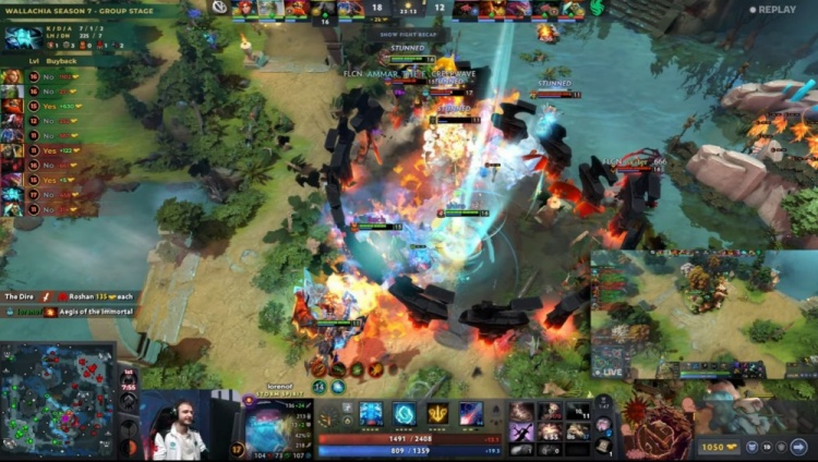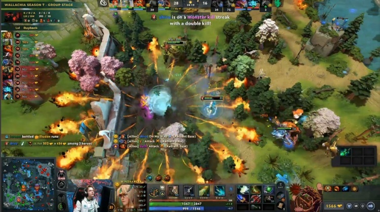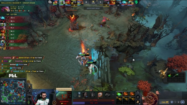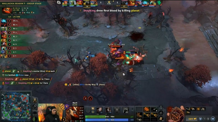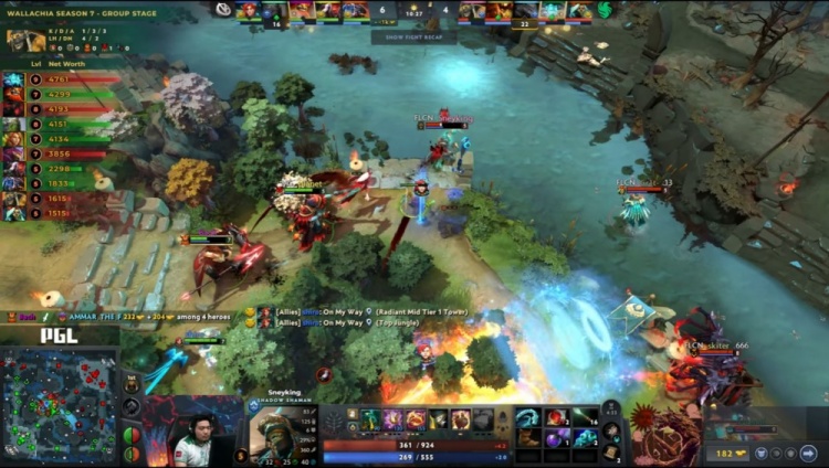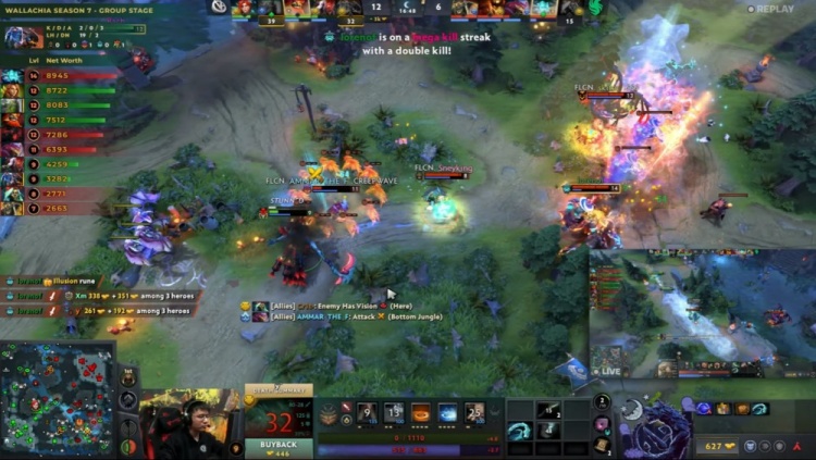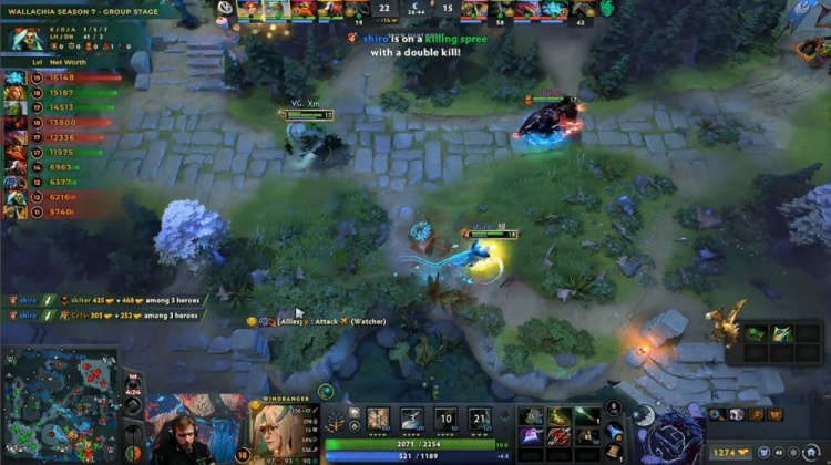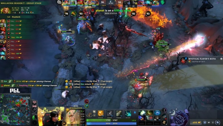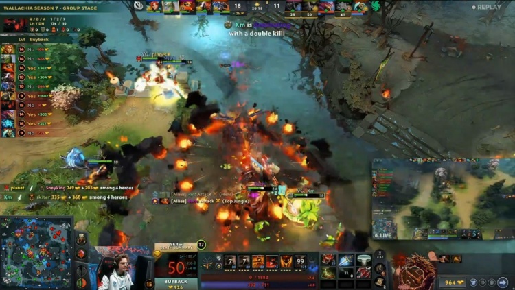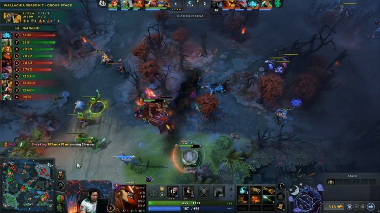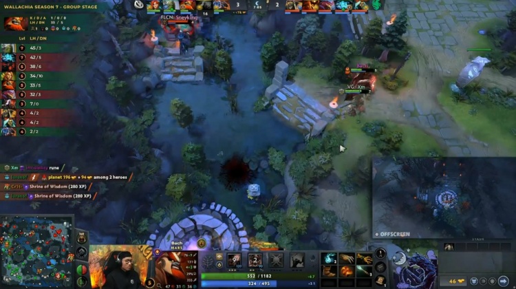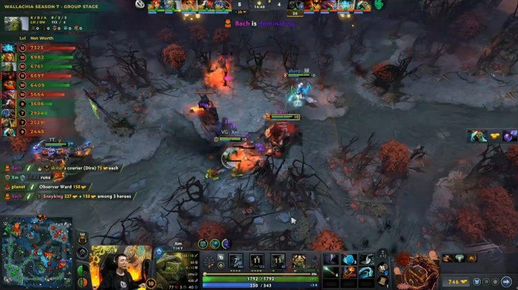 中期野区再战,skiter影魔被肉山扔到Xm脸上遭到双杀,VG经济领先2k。法老拿下一代肉山后野区团战,lorenof盾被直接打掉,后续shiro风行连续捆两人,VG野区团战打出1换4经济领先扩大至4k,紧接着Xm小小中路与河道连杀Cr1t奶绿两次。