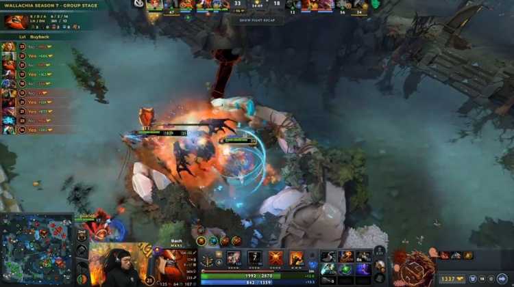 【33:09】法老五人开雾进VG野区,Bach玛尔斯开bkb黏住lorenof,毛哥没bkb被skiter击杀,毛哥吃满伤害,VG打出1换3吃掉二代肉山,不朽之守护给到shiro风行。