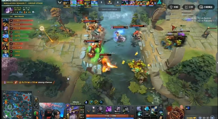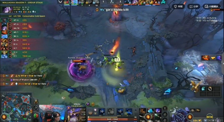 【14分钟】Aurora连续扫图,先后逮捕了xNova冰魂、Ame的TB和Fy的大树,相当于打了一波0换3之后再拆XG下二塔!7K差距了!