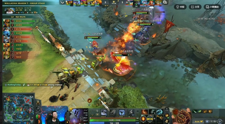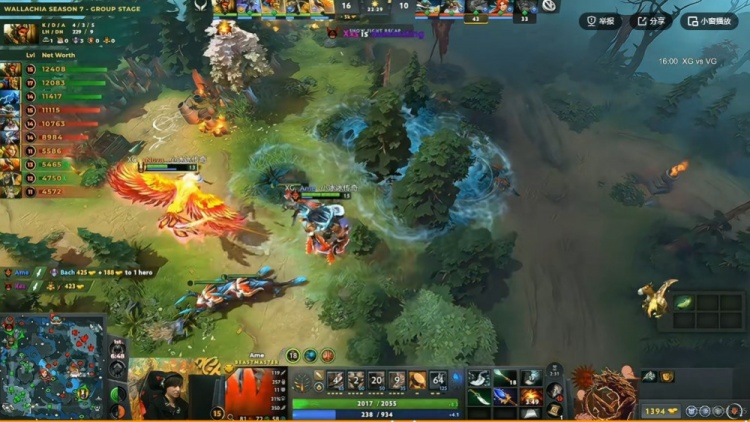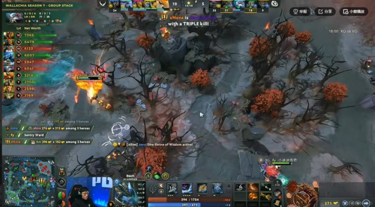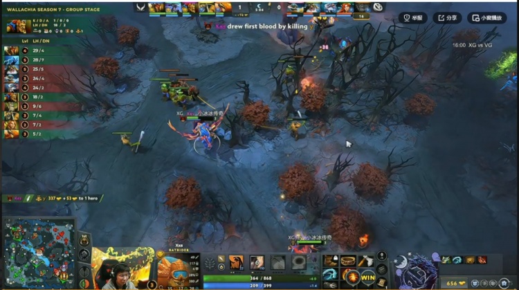 【16分钟】VG上路借助大鱼人跳踩强杀Xxs蝙蝠,支援的XG双核结果被planet风行者双捆,Ame的兽王也被留住!VG打出0换2,拆掉XG的上一塔!