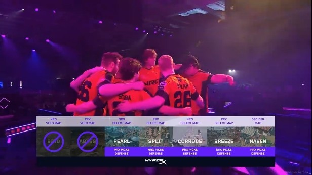 第一局:手枪局PRX直接进攻包点,NRG枪法失瞄被PRX拿下手枪局!