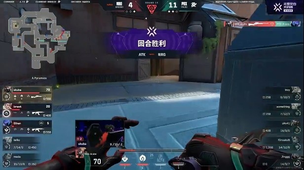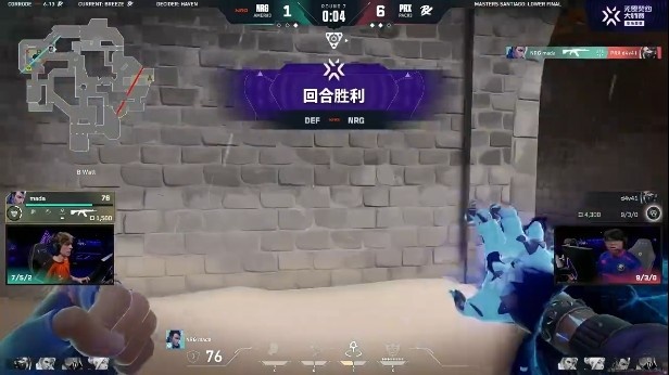 第七局:PRX开局再次直接rush进B点,NRG点内重防成功守住包点,最终NRG打赢残局先拿胜利!