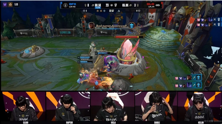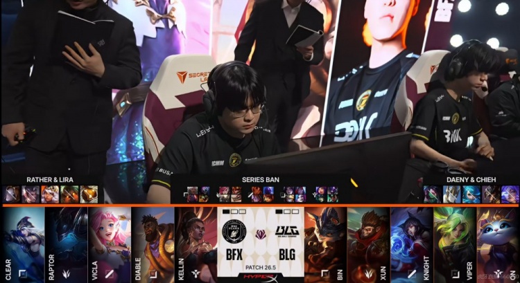 BFX:上单Clear、打野Raptor、中单VicLa、下路Diable、辅助Kellin