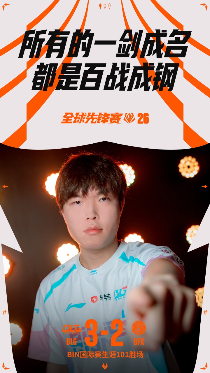 >LPL赛事官方祝贺BLG取胜:所有的一剑成名,都是百战成钢