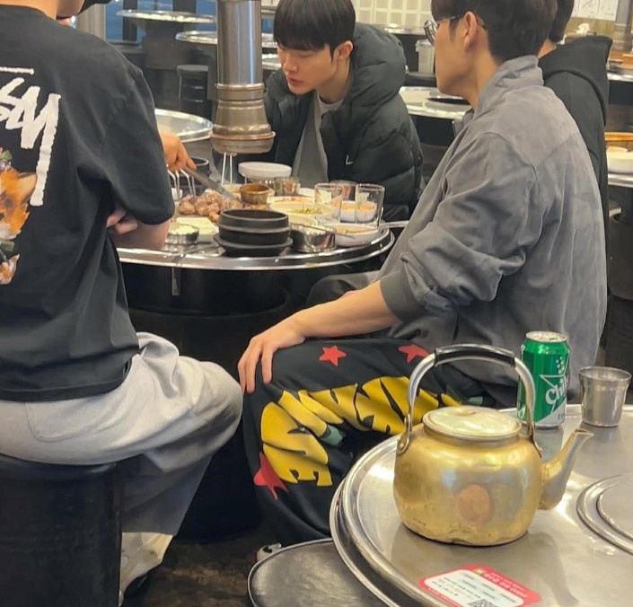 韩国网友晒照烤肉店偶遇T1:没戴眼镜的李哥、没睡醒的peyz?