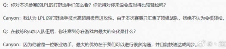 Canyon:因为他曾是一位职业选手,最大的优势在于我们可以进行很多沟通,并且能快速达成同步。