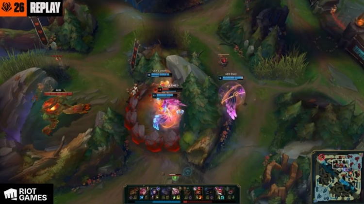 【18:45】Canyon蔚带队入侵JDG野区,V神璐璐先给自己大招但被Ruler芸阿娜击杀,GALA金克丝又被Canyon锁头融化,GEN打出0换3,经济领先接近6k。