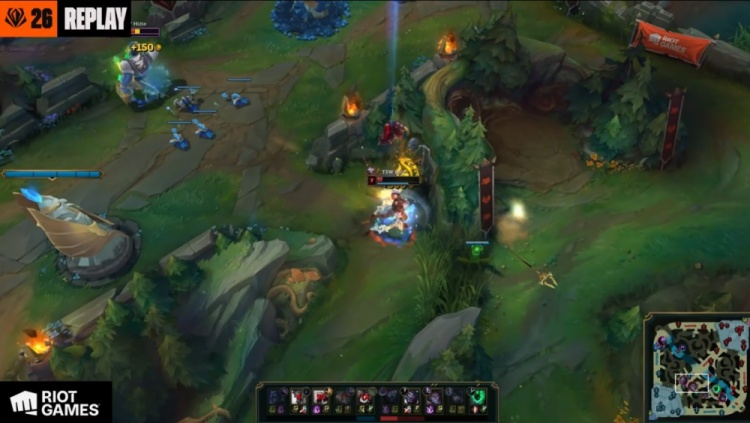 【11:23】SkewMond巨魔抓中,Dire塞拉斯被追击至G2高地,SkewMond巨魔柱子防止其送塔,BB慎开大帮助SkewMond拿到人头,随后上路三角草Pun贾克斯配合Hizto抓BB但被BB反杀,SkewMond再来中路,Dire塞拉斯没能杀掉Caps反被SkewMond反杀。