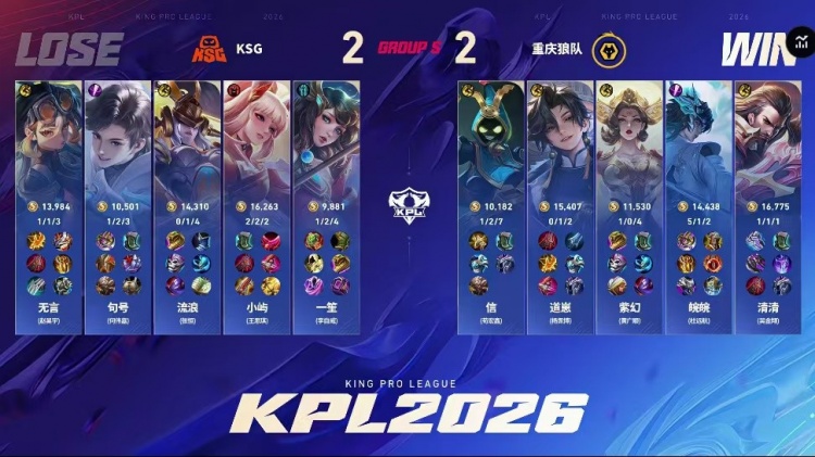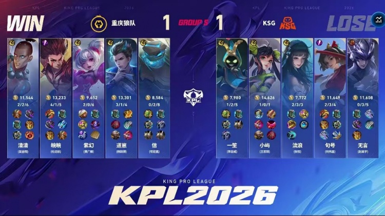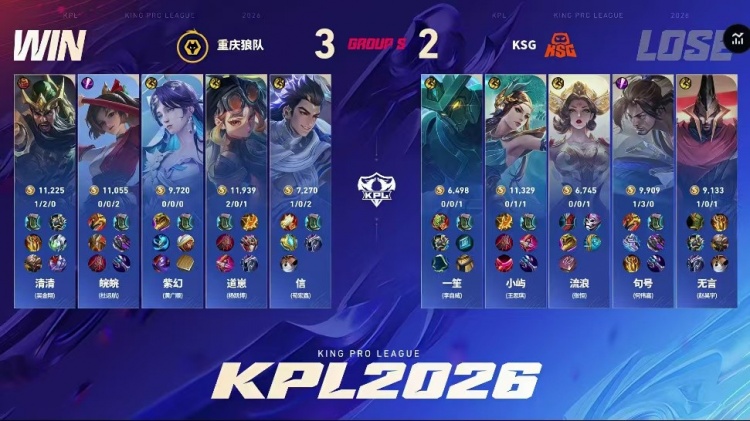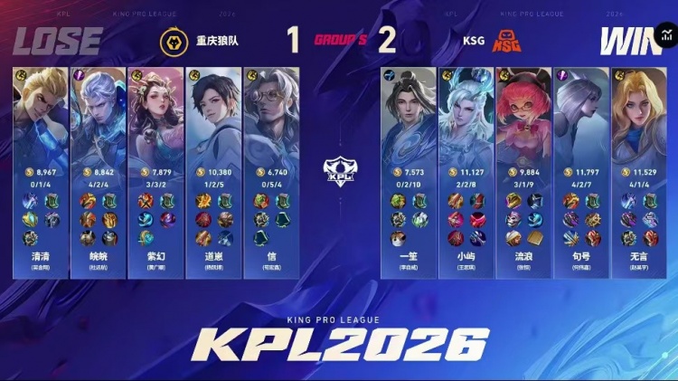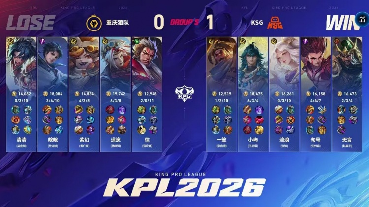 直播吧3月18日讯 2026KPL春季赛本场比赛是由重庆狼队对阵到KSG!