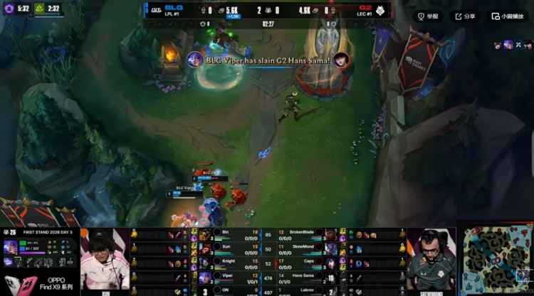 第二局:🎮后发制人!Bin纳尔对线压制+团战一打二立功 BLG拿下三个赛点