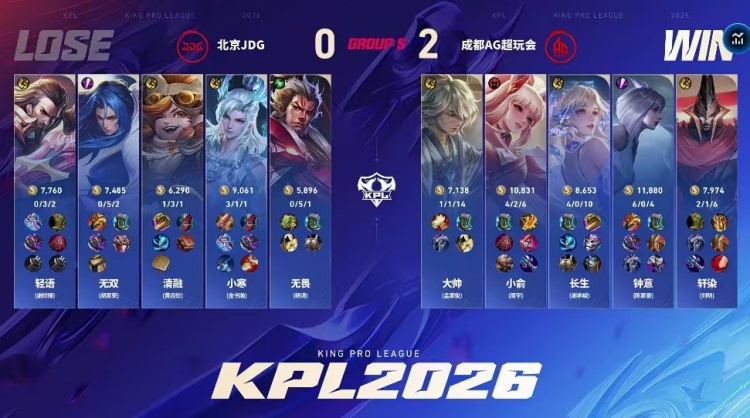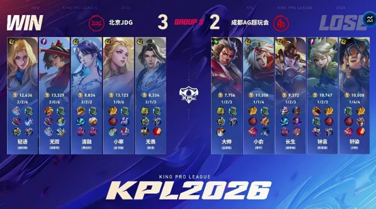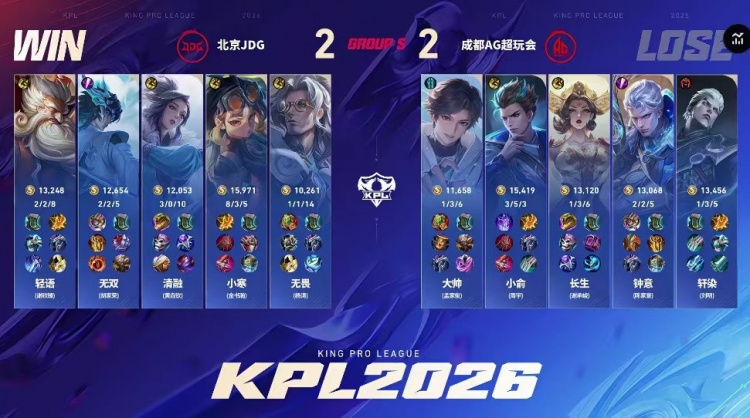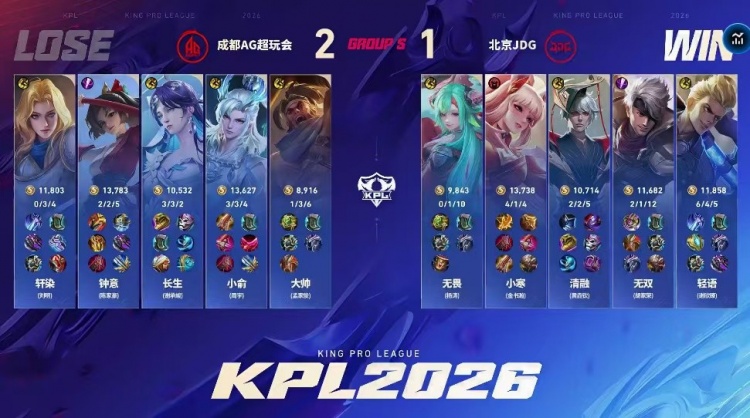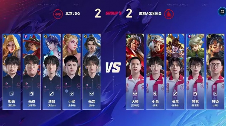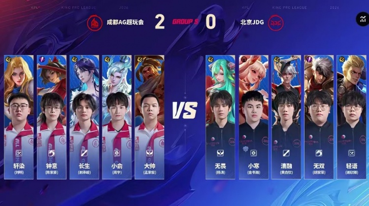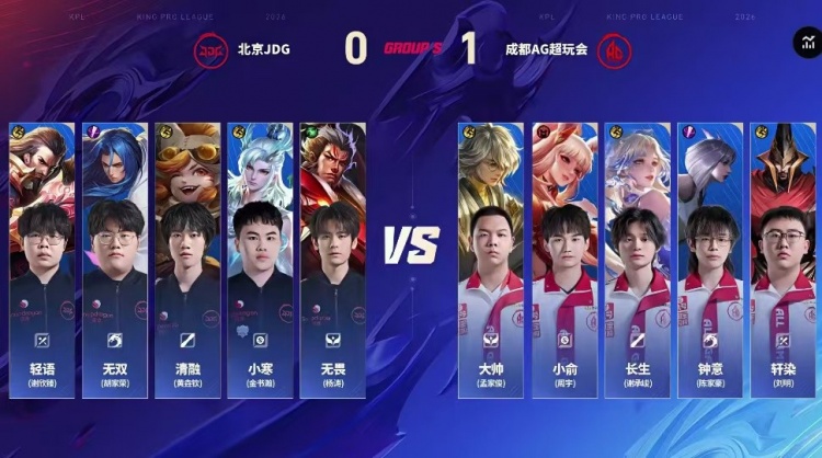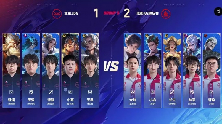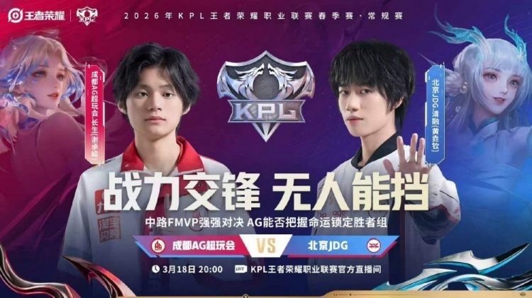 直播吧3月18日讯 2026KPL春季赛本场比赛是由成都AG超玩会对阵到北京JDG!