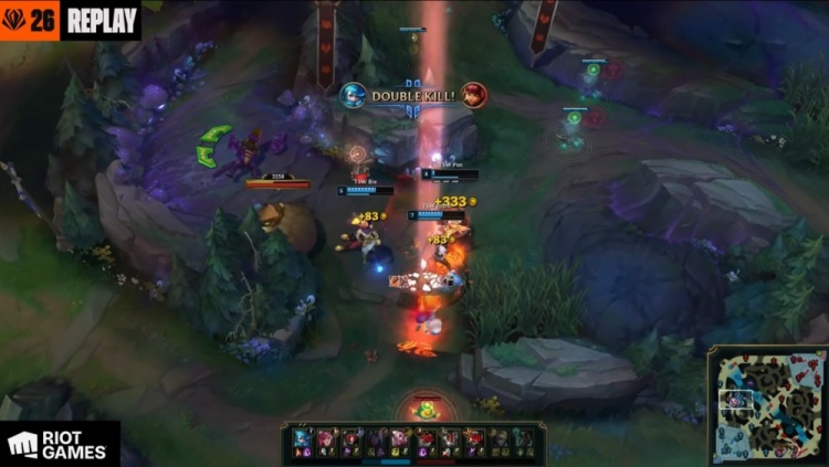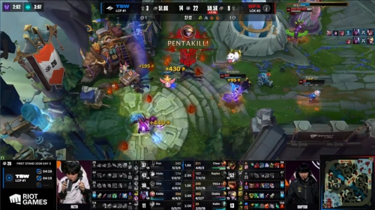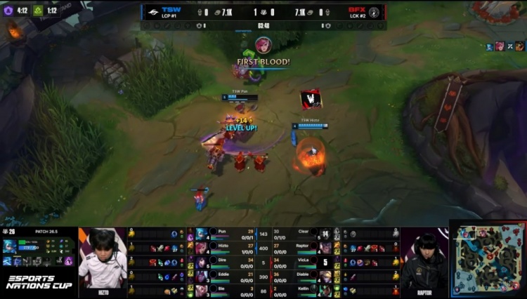【3:32】Hizto蔚去上Q闪配合Pun格温逮捕Clear鳄鱼,后者没能交出闪现就交出一血。