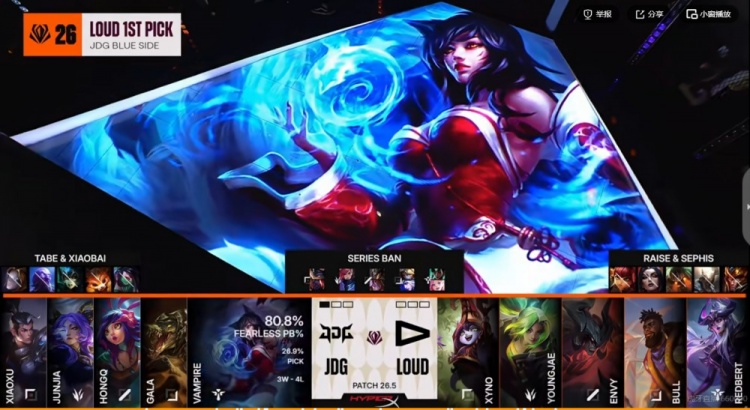BP阶段:(第二局LOUD选择先ban先选,JDG则是选择蓝色方)