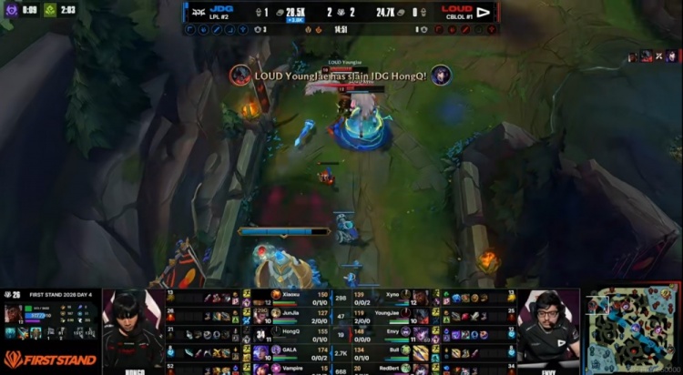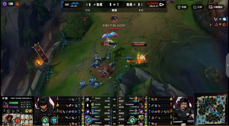 直播吧3月20日讯 2026年全球先锋赛来到小组赛第四日,今天的第二场是败者组,JDG对阵LOUD!