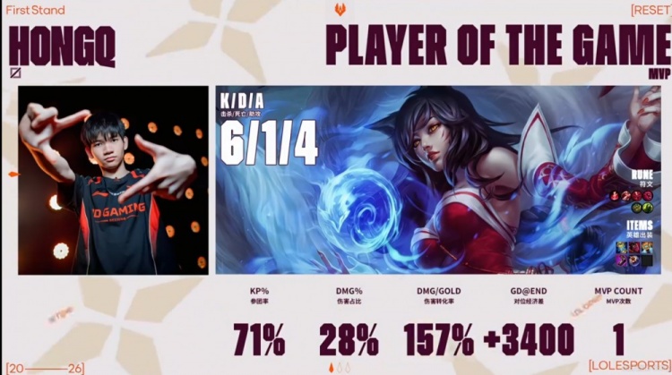 第一局:🎮钝刀割肉!GALA伊泽瑞尔+Vampire卡尔玛打穿下路 JDG赢首局