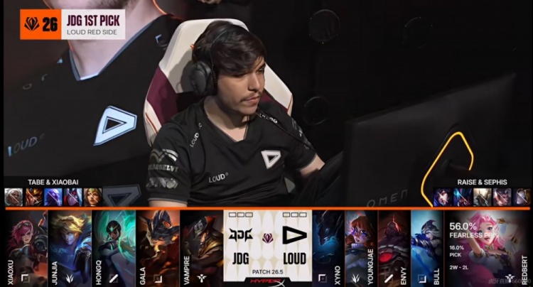 LOUD:上单xyno,打野YoungJae,中路Envy,下路Bull,辅助RedBert