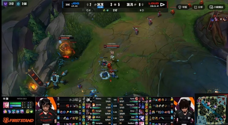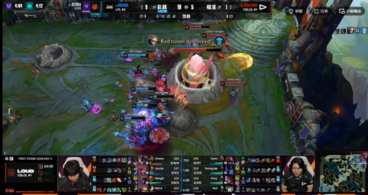直播吧3月19日讯 2026年全球先锋赛来到小组赛第四日,今天的第二场是败者组,JDG对阵LOUD!