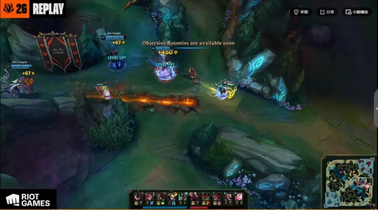 【3:40】双方打野争抢上路河道蟹,虽然Junjia蔚抢到了河蟹但是自己被梦魇黏住!最终YoungJae梦魇跟闪一个Q完成对位击杀,拿下一血!