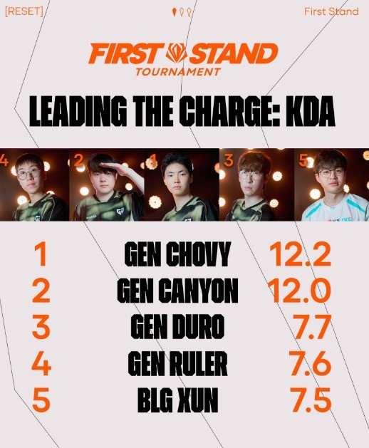 先锋赛KDA排名:Chovy第一 前四均为GEN选手 xun第五