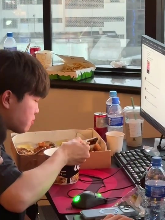 >BLG更新选手动态:自律人士Bin哥的欺骗餐 依旧看着UFC下饭