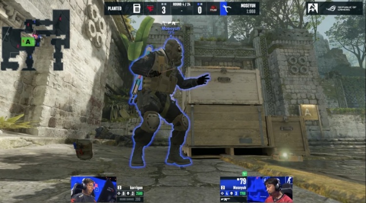 第15回合长枪局,总监与jcobbb双人前顶双杀,但总监被换,天禄带包转A,Moseyuh单摸B点被杀,天禄三人死在中路匪口,FaZe拿到第7分。