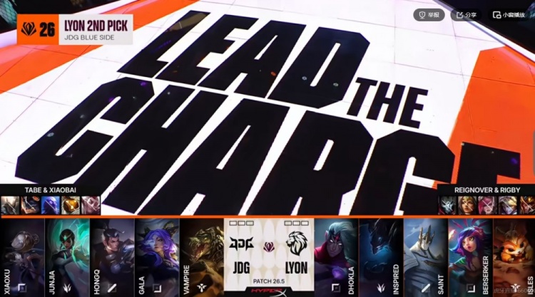 直播吧3月20日讯 2026年全球先锋赛来到小组赛第四日,今天的第二场比赛是LPL二号种子JDG对阵LYON!