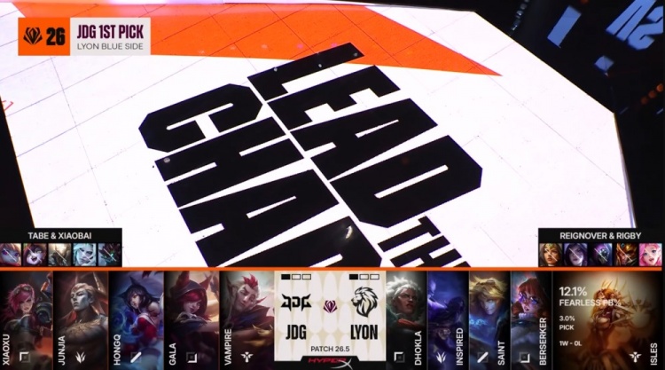 直播吧3月21日讯 2026年全球先锋赛来到小组赛第四日,今天的第二场比赛是LPL二号种子JDG对阵LYON!
