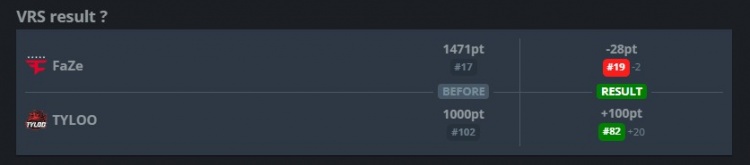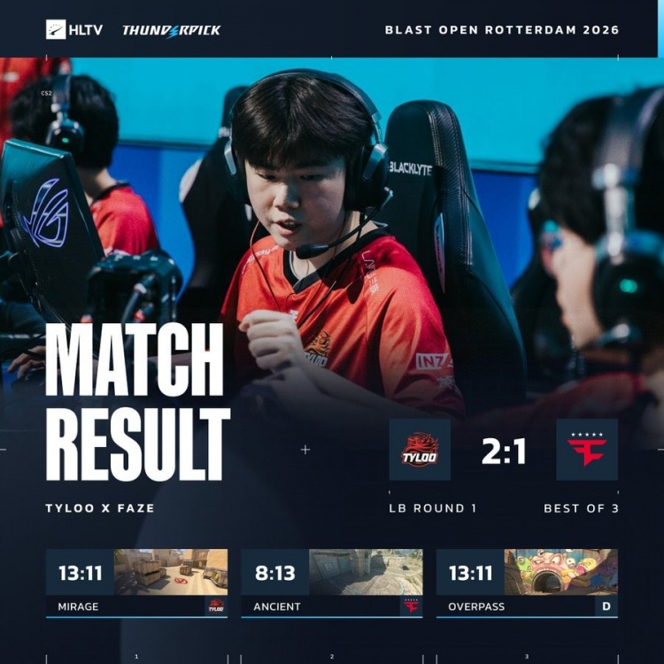 此役过后TYLOO获得100VRS积分,VRS排名来到82位,重新掌握晋级major的主动权;FaZe失去28VRS积分,VRS排名来到第19名,能否晋级major需要看竞争对手表现。