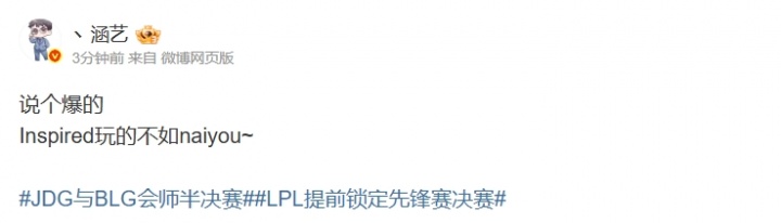 直播吧3月21日讯 在今日的先锋赛败者组比赛上,LYON在第四局比赛优势时连放三条小龙的操作让诸多粉丝不解,对此涵艺更博表示:这比赛。。。懂的都懂了!