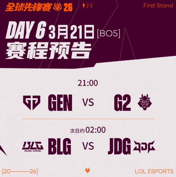 2026全球先锋赛 半决赛 D6 3月21日 赛程预告及首发名单