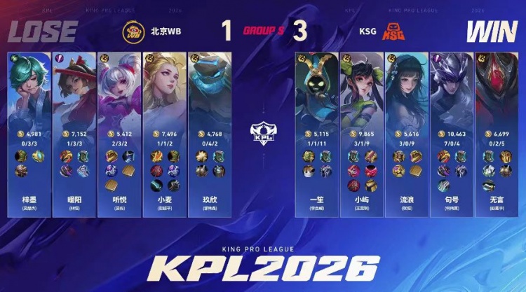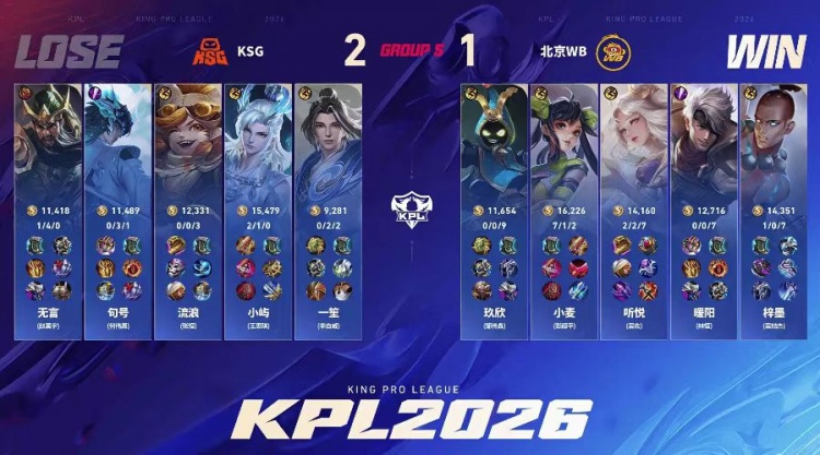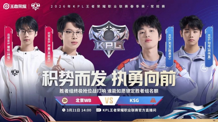 直播吧3月21日讯 2026KPL春季赛本场比赛是由KSG对阵到北京WB!