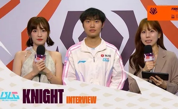 直播吧3月22日讯 2026全球先锋赛四强赛,BLG以3-0的比分战胜JDG挺进决赛,赛后Knight接受韩文流采访;