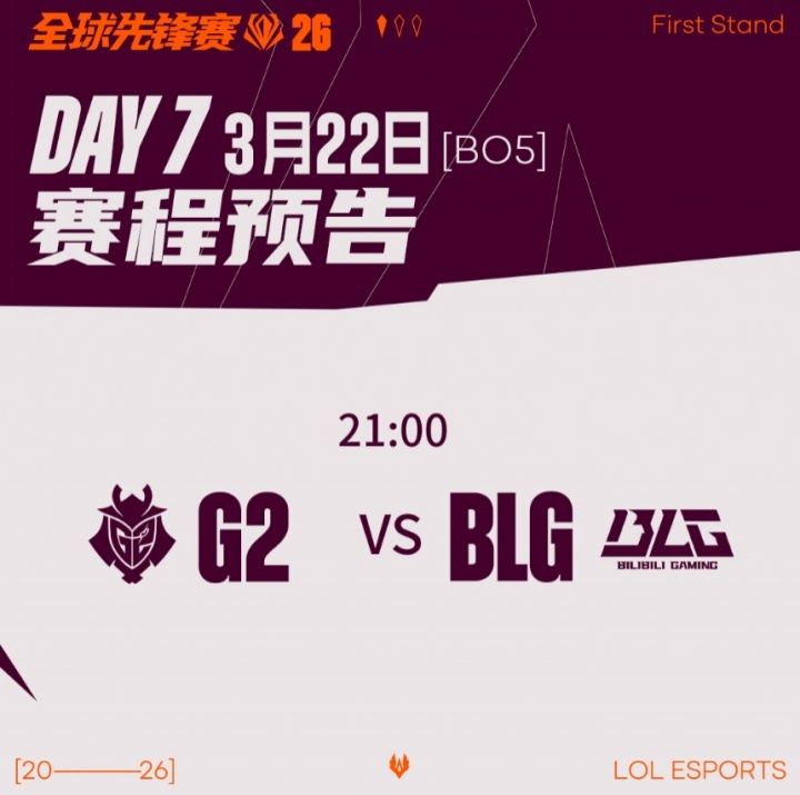 21:00 G2对战BLG(BO5)