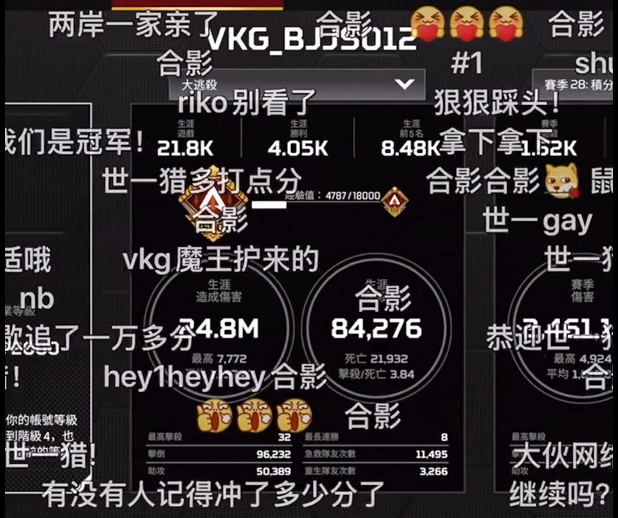 起因中国台湾VKG选手"蛋蛋鼠"在长期锁定世一猎的情况下,日本玩家riko私信私信蛋蛋鼠已经放弃放弃,随后采用以日均20小时以上对战时长、仅睡3小时的强度冲分,且全程不开直播、不发动态,被社区质疑存在代打、账号共享或作弊行为。