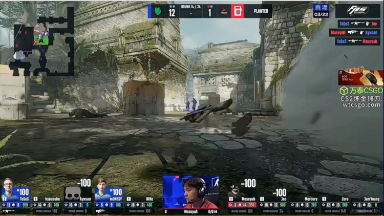手枪局Falcons佯攻在B区拿到首杀,TYLOO反推但是被m0NESY在中路架住,残局3V3的回防,TeSeS在包点串烧双杀解决局面!1-0!